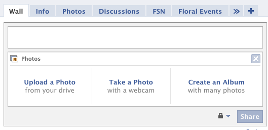 - Upload a Photo – Choosing this option to add photos to your Facebook wall and an album called “Facebook Wall” under your photos tab.