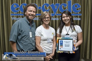 In this photo, Jerrica of Boulder Blooms (a Boulder CO florist) accepts the Eco-Cycle Zero Waste Business of the Year award.