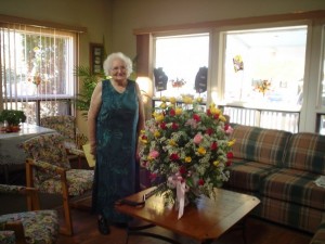 This photo shows the recipient of 87 roses. This large rose arrangement was designed by Corinne Galarneau of Artistic Petals & Scents, a flower shop in Hanna Alberta Canada.