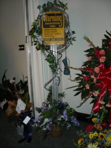 This unique and personalized sympathy arrangement features a traffic sign in honor of the deceased’s occupation. These funeral flowers were designed by Four Seasons Florist in Hattiesburg Mississippi/
