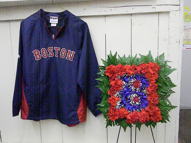 Memorial for a Red Sox fan at Cole’s Flowers in Middlebury, VT