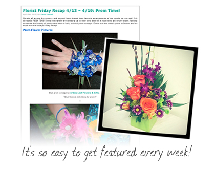 On Monday, we will announce our favorite Arrangement of the Week and that florist will be featured on our Facebook cover photo all week long!